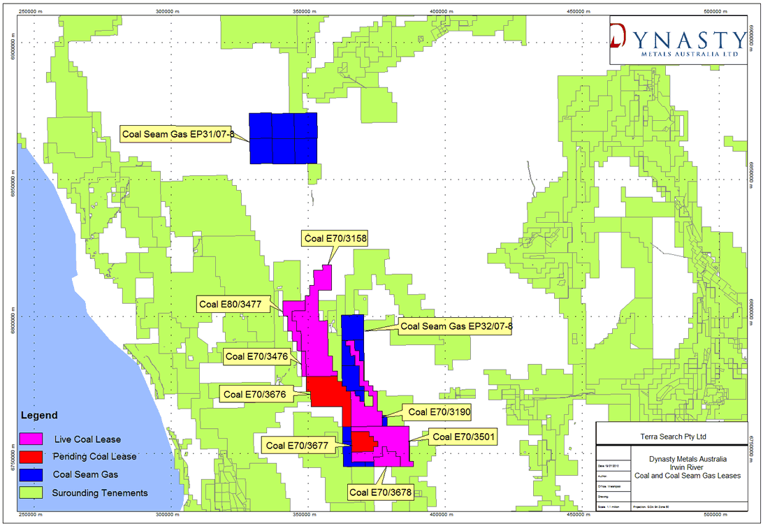 Historical evidence and Dynasty seismic work suggest the coal measures on its Irwin River Tenements, represent a valid exploration target for coal seam methane and that the inter-bedded sands within the coal seams may also contain methane migrated from the coal seams. The Permian Coal Measures are overlain by Triassic shales which may act as a seal preventing escape of gases. Further interpretation and exploration is planned for future reporting periods.